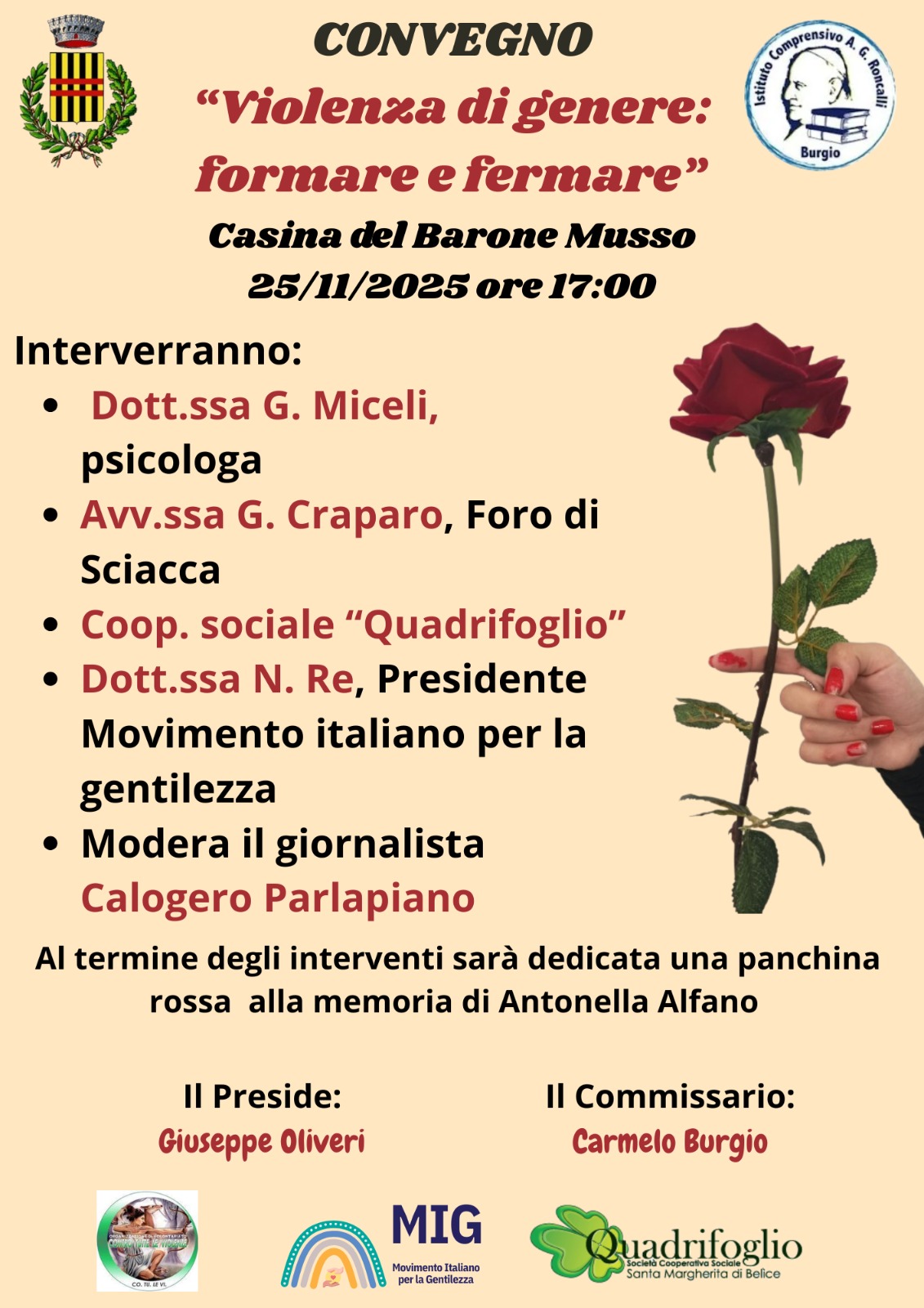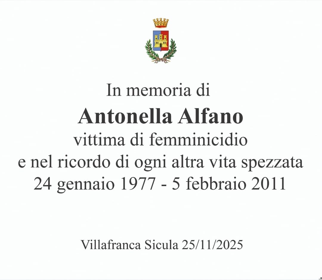 Ringrazio Natalia, presidente del MIG Movimento Italiano per la Gentilezza, che conobbe mia sorella da ragazzina per la comune passione per l'atletica leggera, Te cara anima gentile, Daria Biancardi, ambasciatrice di gentilezza e voce che ha abbraciato ed interpretato la storia di mia sorella, il Commissario Straordinario Dott. Carmelo Burgio e tutta la comunità di Villafranca Sicula per il dono della panchina rossa in Sua memoria.
